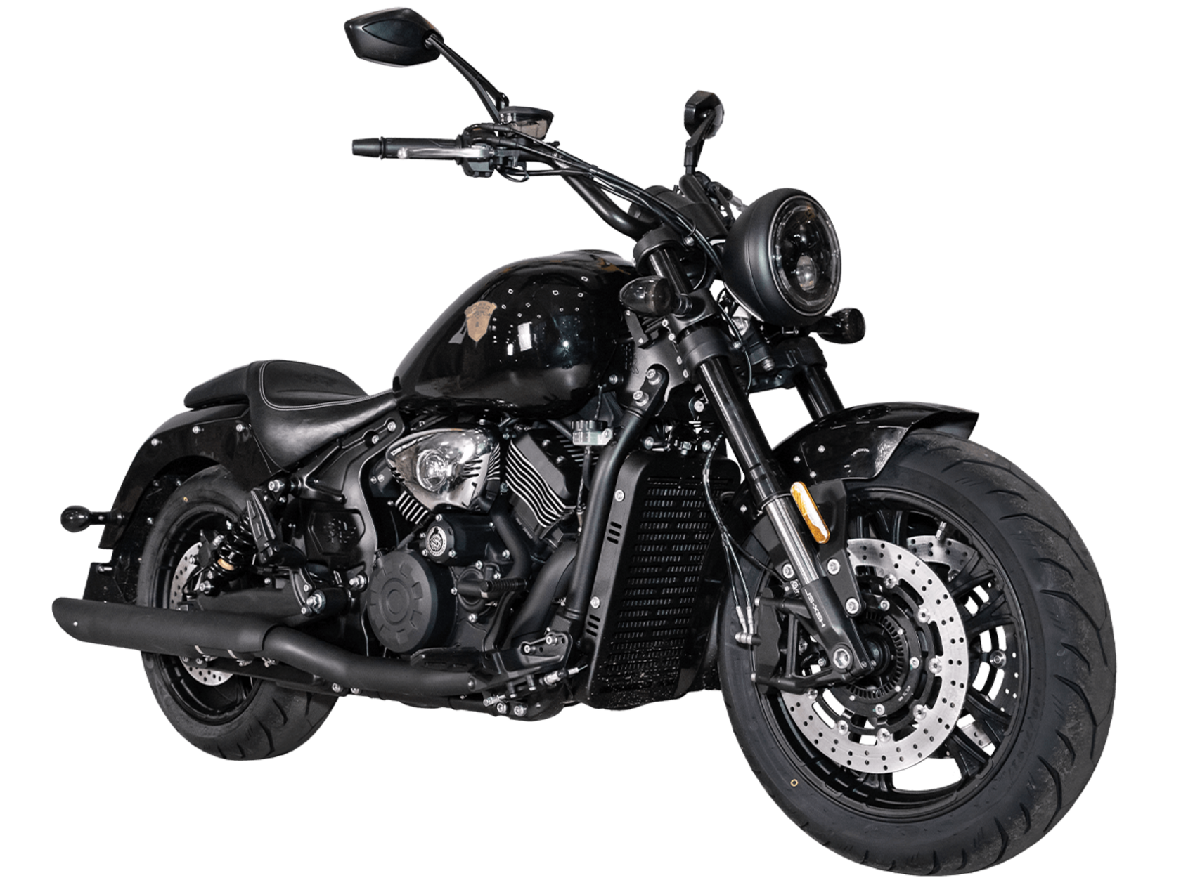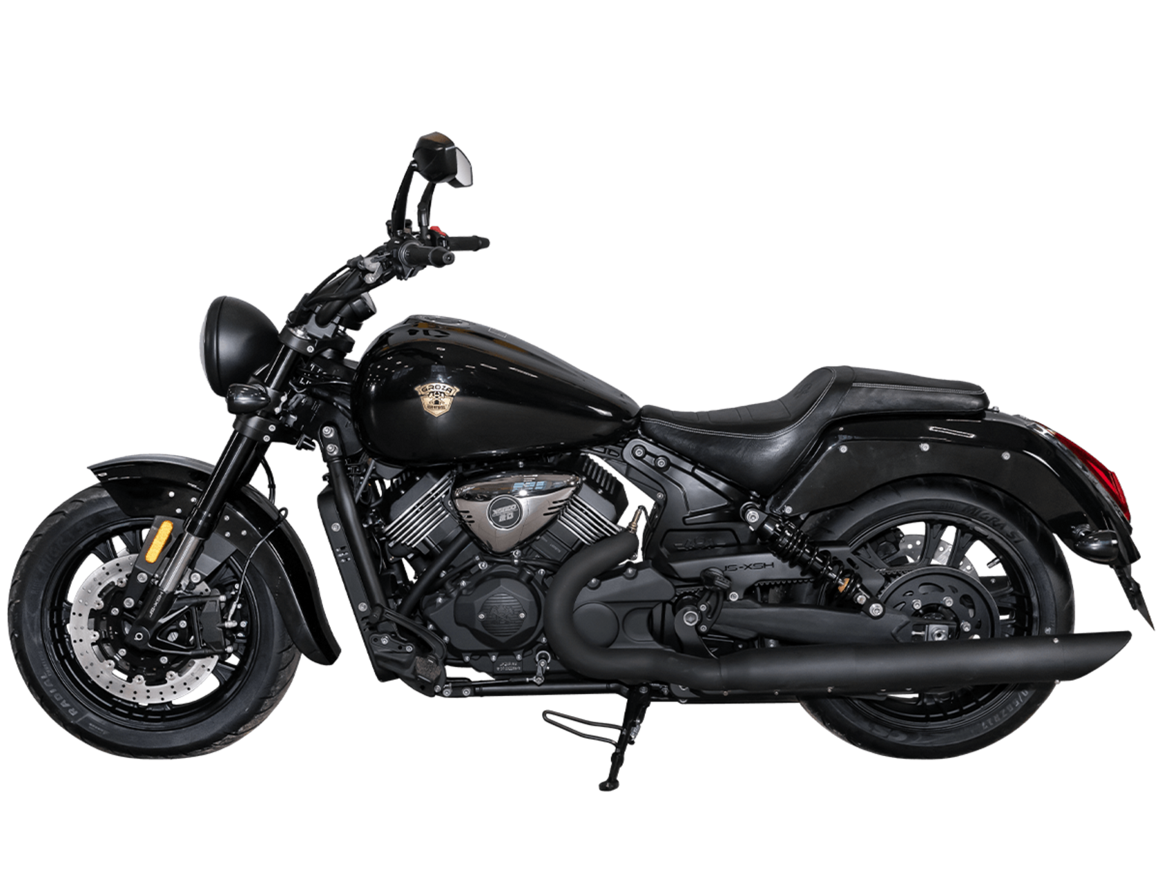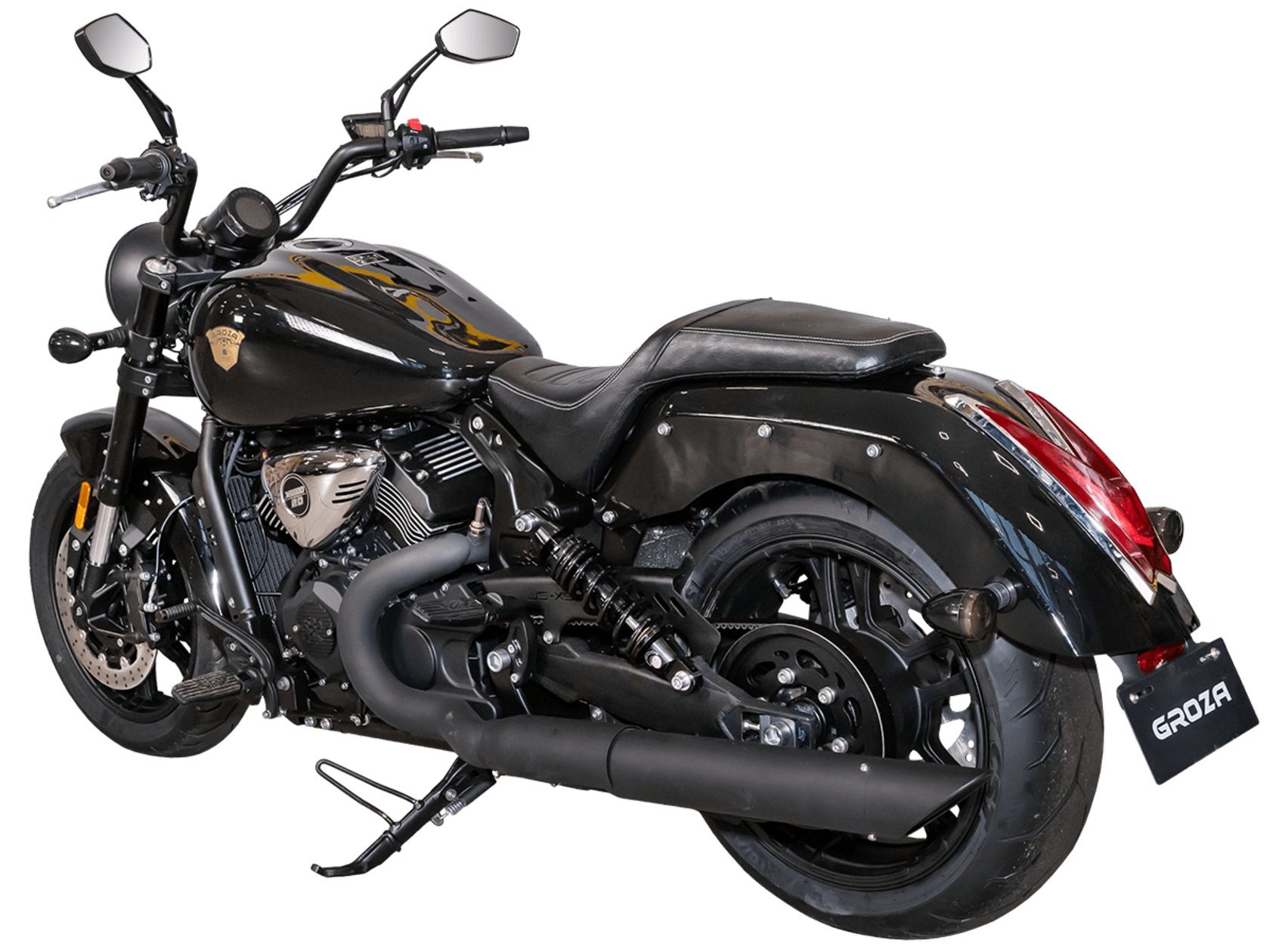 GROZA SL800 – великолепный круизёр, который подойдёт как для повседневной городской езды, так и для комфортного перемещения на длинные дистанции. Его дизайн исполнен в классическом стиле, соответствующем всем канонам данного типа мотоциклов.Двухцилиндровый V-образный двигатель объёмом 800 см3 мощностью 61 л.с. при высоких показателях динамики и отличном крутящем моменте способен разгонять аппарат до 160 км/ч. Инжекторный впрыск топлива с инжектором DELPHI увеличивает топливную экономичность, а также позволяет добиться высокой приёмистости и неприхотливости агрегата. Привод на ведущее колесо осуществляется ремнём знаменитой марки USA Gates. Жидкостная система охлаждения не допустит перегрева мотора даже при самом агрессивном вождении.Аппарат имеет 6-ступенчатую механическую коробку передач с классической схемой “1-N-2-3-4-5-6”. На мотоцикл установлены литые алюминиевые диски диаметром 17 дюймов. Ширина передней покрышки – 140 мм, задней – 200 мм. С неровностями дороги эффективно справляются телескопическая вилка перевёрнутого типа спереди и маятник с двумя газонаполненными амортизаторами сзади. Подвеска имеет 7 ступеней регулировки, что обеспечивает лёгкую перестройку на различные режимы езды. Для всего класса круизёров такая опция – большая редкость. Эффективное и безопасное замедление с любых скоростей обеспечивают гидравлические дисковые тормоза спереди и сзади от компании NISSIN.Аппарат оснащён своеобразной и очень привлекательной по дизайну светодиодной оптикой, а также бортовым компьютером и ярким и информативным дисплеем.Мотоцикл сочетает в себе отличные технические характеристики, богатое оснащение, комфорт и надёжность, что позволяет вам ощутить настоящую свободу на любой дороге