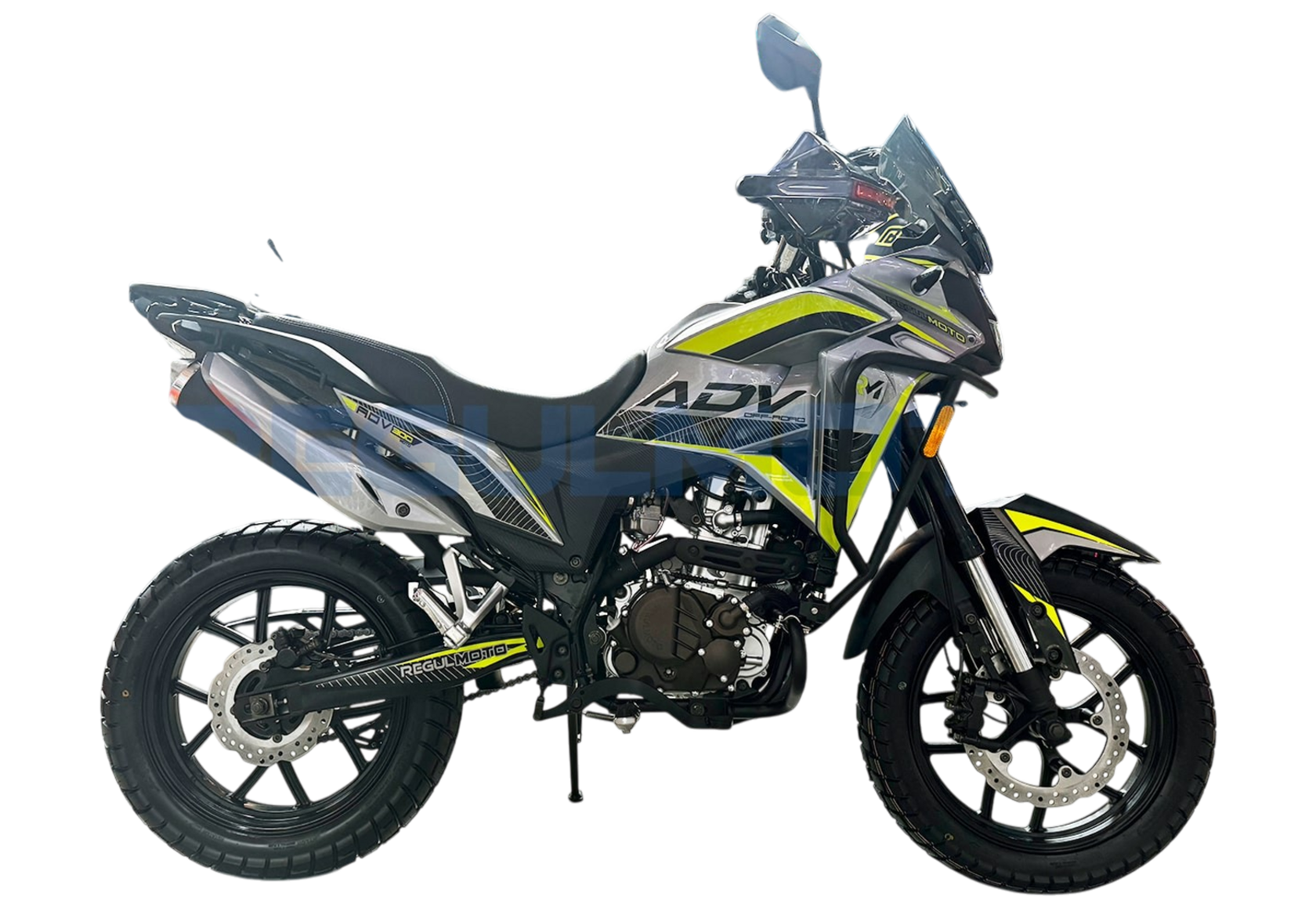Встречайте новинку в мире мотоциклов – Regulmoto ADV 300 NB. Этот байк представляет собой идеальное сочетание мощности, надежности и удобства для путешествий как по бездорожью, так и по асфальту.В основе мотоцикла лежит мотор NB300 объемом 292 куб.см. с одним цилиндром, способным выдавать внушительные 28 лошадиных сил. Этот четырехтактный двигатель оснащен балансировочным валом для минимизации вибрации во время движения. Система охлаждения жидкостная, что обеспечивает эффективное охлаждение в различных условиях эксплуатации.Regulmoto ADV 300 NB оснащен шестиступенчатой механической трансмиссией, что позволяет выбирать оптимальную передачу для различных условий маршрута. Запуск мотоцикла осуществляется с помощью электростартера, обеспечивая быстрый и надежный старт в любой ситуации.Система подачи топлива NIBBI Racing PWK34 гарантирует оптимальную топливоподачу, предоставляя высокую эффективность работы двигателя. Система зажигания CDI гарантирует стабильную работу двигателя во всех условиях.Что касается тормозной системы, то передние тормоза мотоцикла Regulmoto ADV 300 NB оснащены двойными дисковыми механизмами, а задние – дисковыми. Это дает надежное и безопасное торможение даже при высоких скоростях и на различных типах покрытия.Подвеска мотоцикла разработана с учетом экстремальных условий езды. Передняя телескопическая подвеска гидравлического перевернутого типа длиной 940 мм обеспечивает отличное сцепление с дорогой и позволяет комфортно преодолевать препятствия. Задняя подвеска – моноамортизатор, что дает стабильность и плавность хода даже на неровных участках маршрута.