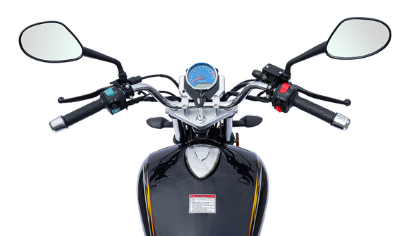Комплектация На переднем колесе установлен дисковый тормоз, хотя в ступице заднего колеса реализован проверенный многими десятилетиями вариант с тормозом барабанного типа.Широкое комфортное сиденье.багажник, складывающиеся пассажирские подножки и наличие мощной центральной подножки. Безопасность эксплуатации на дорогах общего пользования обеспечивают обязательный комплект зеркал заднего вида
