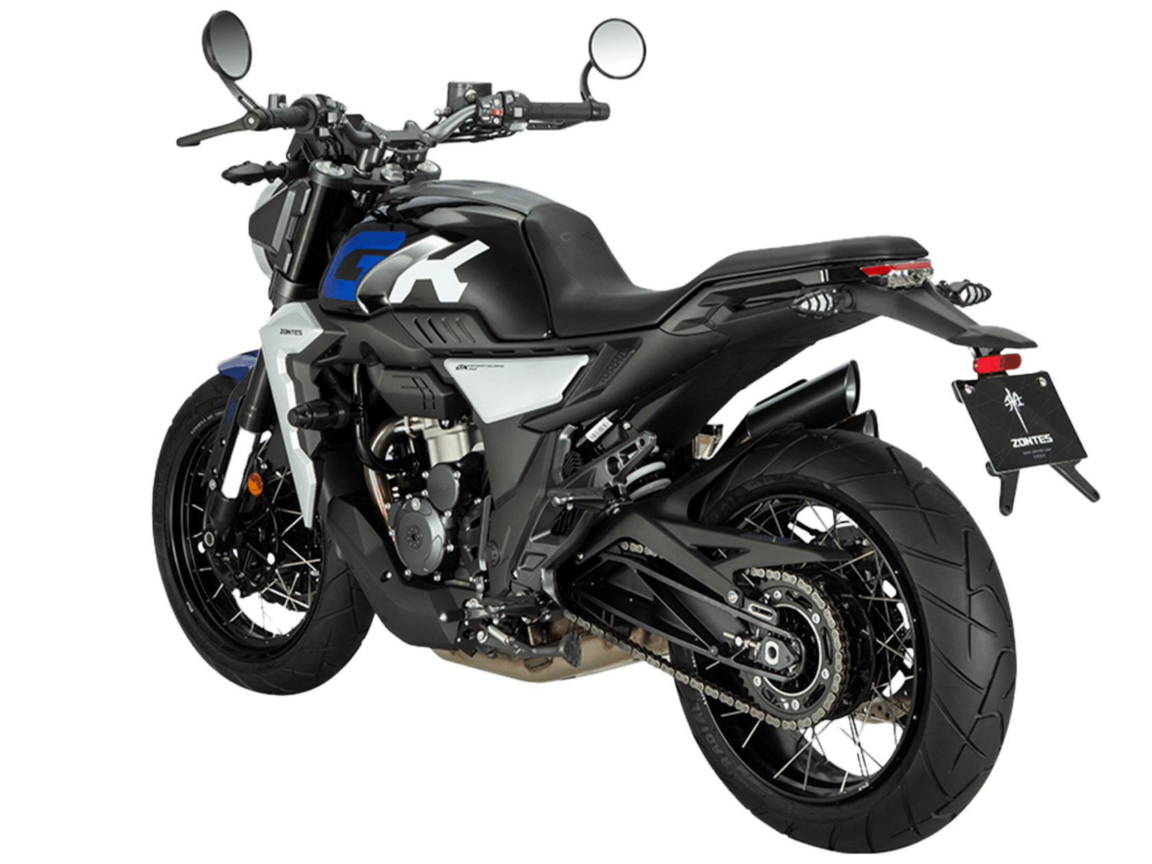 Мотоцикл ZONTES ZT350-GK – современный неоклассик для покорения городских пространств. Хорошо проявляет себя как в тесном межрядье, так и на свободных трассах.Силовая установка представлена одноцилиндровым 4-тактным двигателем ZT184MP с 4 клапанами и 2 верхними распредвалами. Двигатель имеет объём 348 см³ и обеспечивает мощность в 39 л.с. Оснащён инжектором BOSCH и системой жидкостного охлаждения. Механическая коробка передач имеет 6 ступеней и схему 1-N-2-3-4-5-6. Запуск двигателя осуществляется с помощью бесключевого доступа.Ёмкость топливного бака 17 литров.Бескамерные спицованные колёса имеют диаметр 17 дюймов. На мотоцикл установлены датчики давления в шинах, показатели от которых выводятся на приборную панель. Для подвески спереди используется телескопическая вилка, сзади – моноамортизатор. Гидравлические дисковые тормоза произведены испанской компанией J.JUAN, входящей в холдинг BREMBO. Передний тормозной диск скрыт под защитным кожухом.В конструкции мотоцикла используется трубчатая стальная рама. Рычаги тормоза и сцепления, а также лапки КПП можно отрегулировать. Рычаги снабжены защитными скобами. Для освещения используется яркая LED-оптика, а приборная панель представлена цифровым дисплеем. Имеется 2 USB-порта.Габариты мотоцикла 2070х845х1120 мм. Колёсная база 1390 мм. Высота по седлу 795 мм. Вес 169 кг.