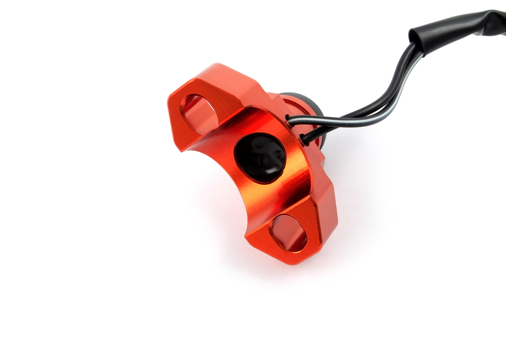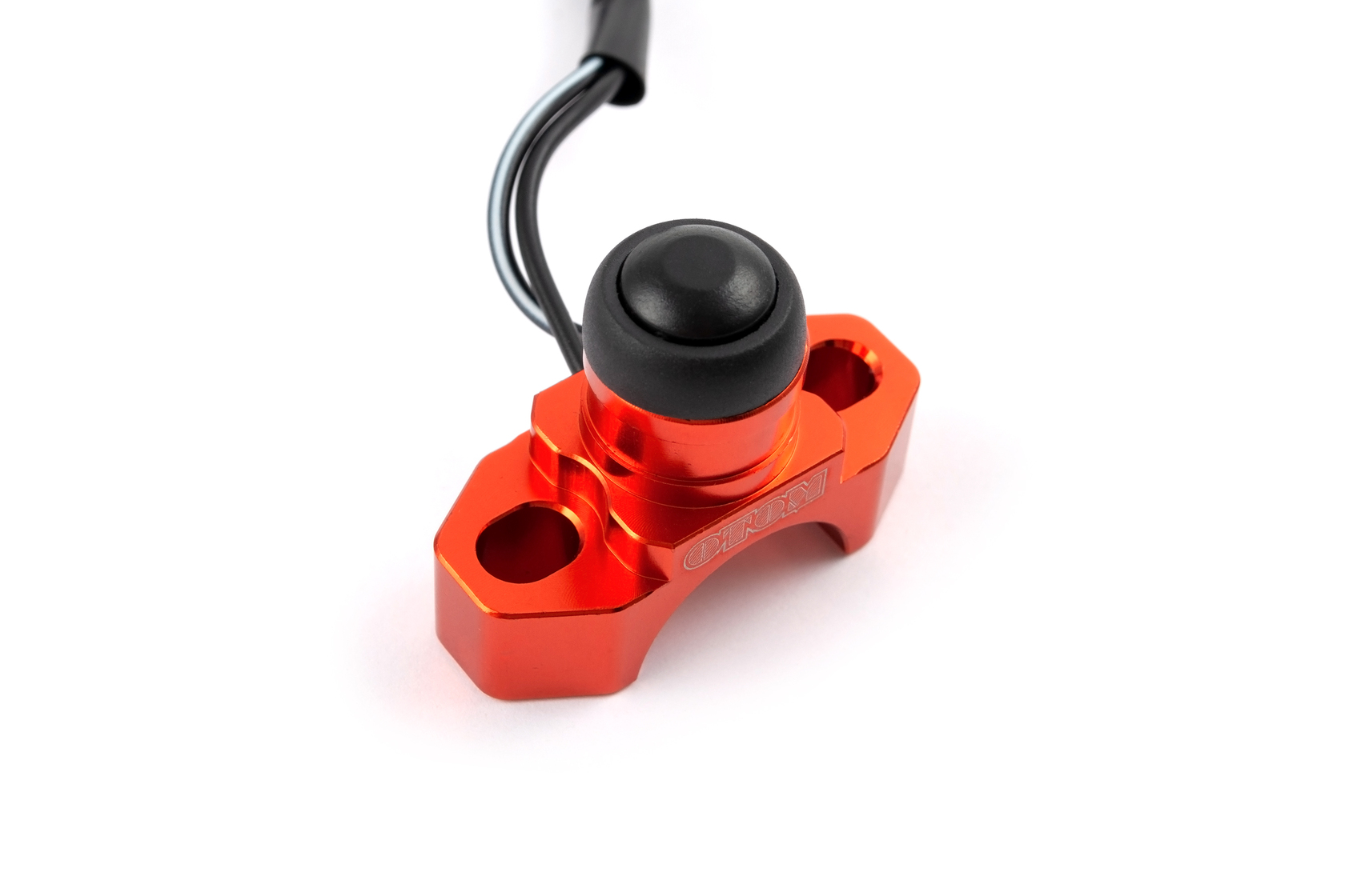 Универсальная кнопка запуска и остановки двигателя OTOM оранжевого цвета. Выполняет функции включения или выключения двигателя в зависимости от схемы подключения. Корпус изготовлен из CNC алюминия с оранжевым покрытием, обеспечивает надежную влагозащиту. Стандартное крепление двумя болтами вместо штатного рычага сцепления или тормозной машинки. Подходит для установки как с левой, так и с правой стороны руля.
