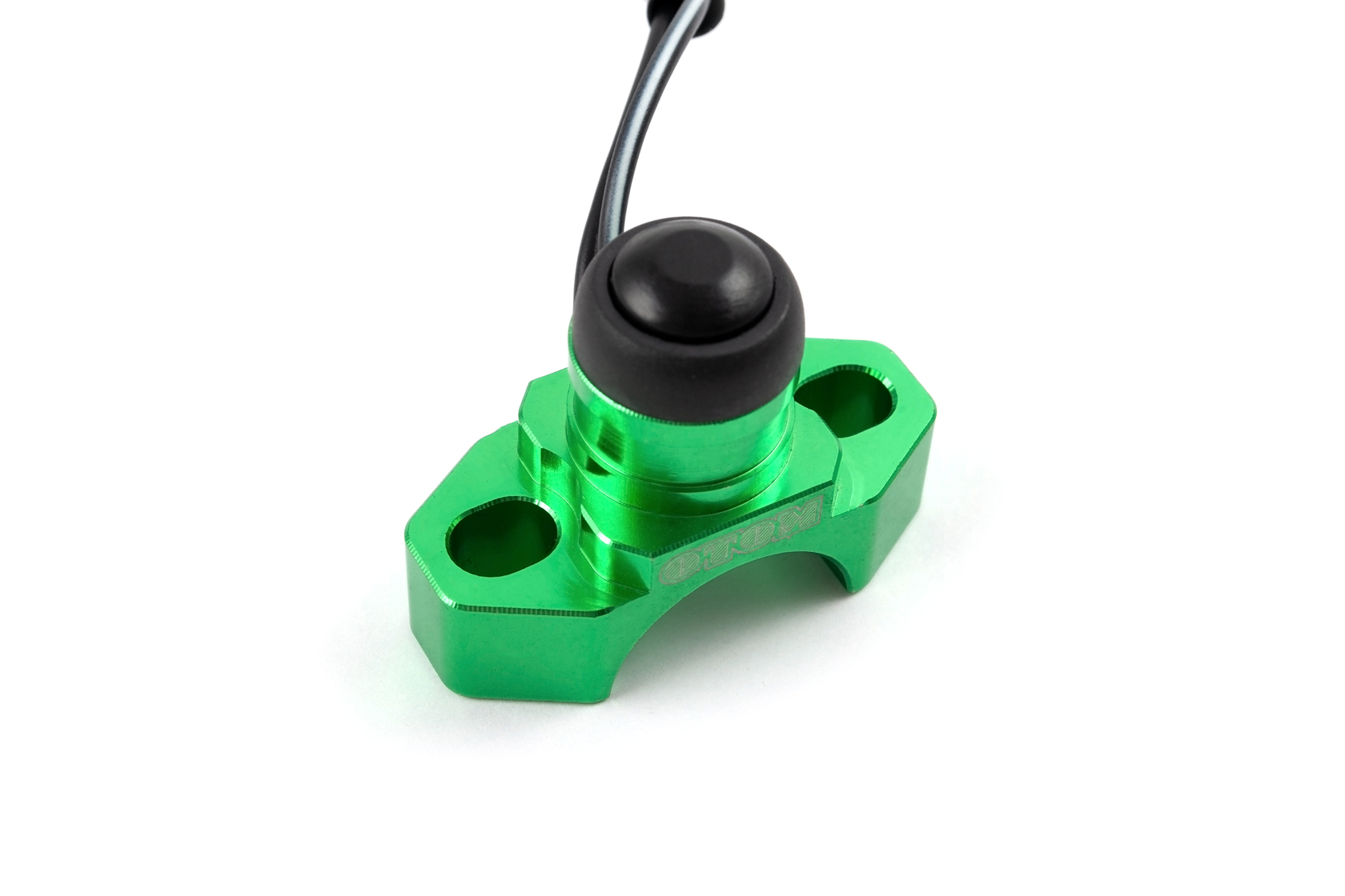Универсальная кнопка запуска и остановки двигателя OTOM зеленого цвета. Выполняет функции включения или выключения двигателя в зависимости от схемы подключения. Корпус изготовлен из CNC алюминия, обеспечивает надежную влагозащиту. Стандартное крепление двумя болтами вместо штатного рычага сцепления или тормозной машинки. Подходит для установки как с левой, так и с правой стороны руля.