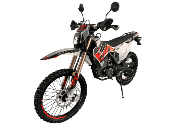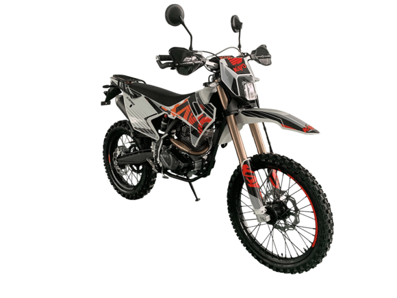 Мотоцикл KAYO K3 300 Road 21/18 2025 – модель нового прорывного эндуро, модернизированная для поездок по дорогам общего пользования. Модель Road имеет ПТС и всё необходимое снаряжение: приборная панель, указатели поворота, стоп-сигнал, звуковой сигнал, зеркала заднего вида. Для перевозки грузов установлена задняя багажная платформа, а для поездок с пассажиром имеется дополнительная пара подножек.Мотоцикл оснащён одноцилиндровым 4-тактным двигателем ZONGSHEN PR300/ZS175FMM-5 объёмом 271,3 см³ с балансирным валом и воздушным типом охлаждения. Максимальная мощность в 21,75 л.с. достигается при 8500 об/мин, а максимальный крутящий момент 22 Нм при 6500 об/мин. Соотношение диаметра и хода поршня 75,0х61,4. Степень сжатия 9,29:1. Карбюратор NIBBI PE30 обеспечивает топливную экономность и бесперебойную работу в самых сложных заездах. На мотоцикле установлена 5-ступенчатая коробка передач и цепной привод. Запуск двигателя осуществляется с помочью электростартера или кикстартера. Объём топливного бака 10 литров.Спицованные колёса с алюминиевыми ободами имеют диаметр 21 дюйм спереди и 18 сзади. Для подвески спереди используется телескопическая вилка перевёрнутого типа длиной 830 мм, а сзади установлен моноамортизатор длиной 450 мм. Оба компонента регулируются. На мотоцикле установлены гидравлические дисковые тормоза с 2-поршневой системой спереди и однопоршневой сзади.Мотоцикл готов к самым суровым вызовам бездорожья. Удобное расположение фильтр-бокса позволяет легко обслуживать его после заездов. Руль оснащён алюминиевой защитой рук с высокими пластиковыми накладками. На мотоцикле используются ручки-«неломайки» с регулировкой положения рычага и короткоходная ручка газа.Габариты 2100х810х1180 мм, вес 109 кг. Клиренс 340 мм, колёсная база 1390 мм, высота по седлу 900 мм.