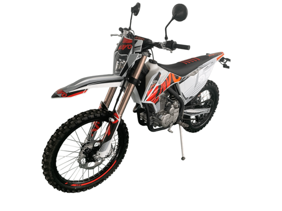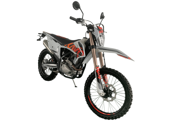 Мотоцикл KAYO T3 300 Enduro 21/18 2025 ПТС – надёжный и производительный эндуро, готовый отправиться по самым сложным маршрутам.Оснащён 4-тактным двигателем объёмом 271,3 см³ с верхним распредвалом и воздушным типом охлаждения. Максимальная мощность в 21,75 л.с. развивает при 8500 об/мин, а максимальный крутящий момент 22 Нм при 6500 об/мин. За подачу топлива отвечает карбюратор PE30. Он обеспечивает топливную экономность и бесперебойную работу двигателя даже в самых жёстких условиях. Соотношение диаметра цилиндра и хода поршня 75,0х61,4. Степень сжатия 9,29:1. Запуск двигателя осуществляется с помощью электростартера или кикстартера. Тип зажигания CDI.Механическая коробка передач имеет 5 ступеней. Привод цепной. Объём топливного бака 8 литров.На мотоцикл установлены спицованные колёса диаметром 21 дюйм спереди и 18 дюймов сзади. Длина подвески спереди 940 мм, длина задней подвески 450 мм. За торможение отвечают дисковые гидравлические тормоза.На мотоцикл установлены спицованные колёса с алюминиевыми ободами, ступицами и стальными буксаторами. Диаметр колёс 21 дюйм спереди и 18 дюймов сзади.За амортизацию отвечает подвеска со стальной прогрессией. Длина передней подвески 940 мм, длина задней подвески 450 мм. Траверсы и задний маятник выполнены из литого алюминия.Мотоцикл имеет ПТС и оснащён всем необходимым для поездок по дорогам общего пользования: диодной светотехникой, звуковым сигналом, цифровой приборной панелью, зеркалами заднего вида. Светотехника представлена яркой фарой для поездок в тёмное время суток, поворотниками, стоп-сигналом. Руль Fatbar выполнен из литого алюминия. Имеются дополнительные подножки для поездок с пассажиром.Габариты мотоцикла 2120х810х1260 мм, вес 119 кг. Клиренс 340 мм, колёсная база 1470 мм, высота по седлу 940 мм.