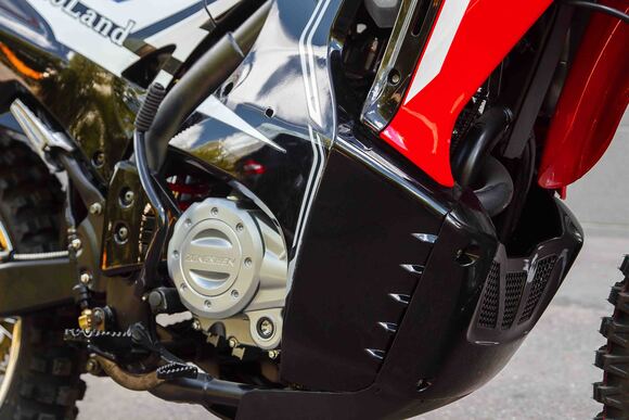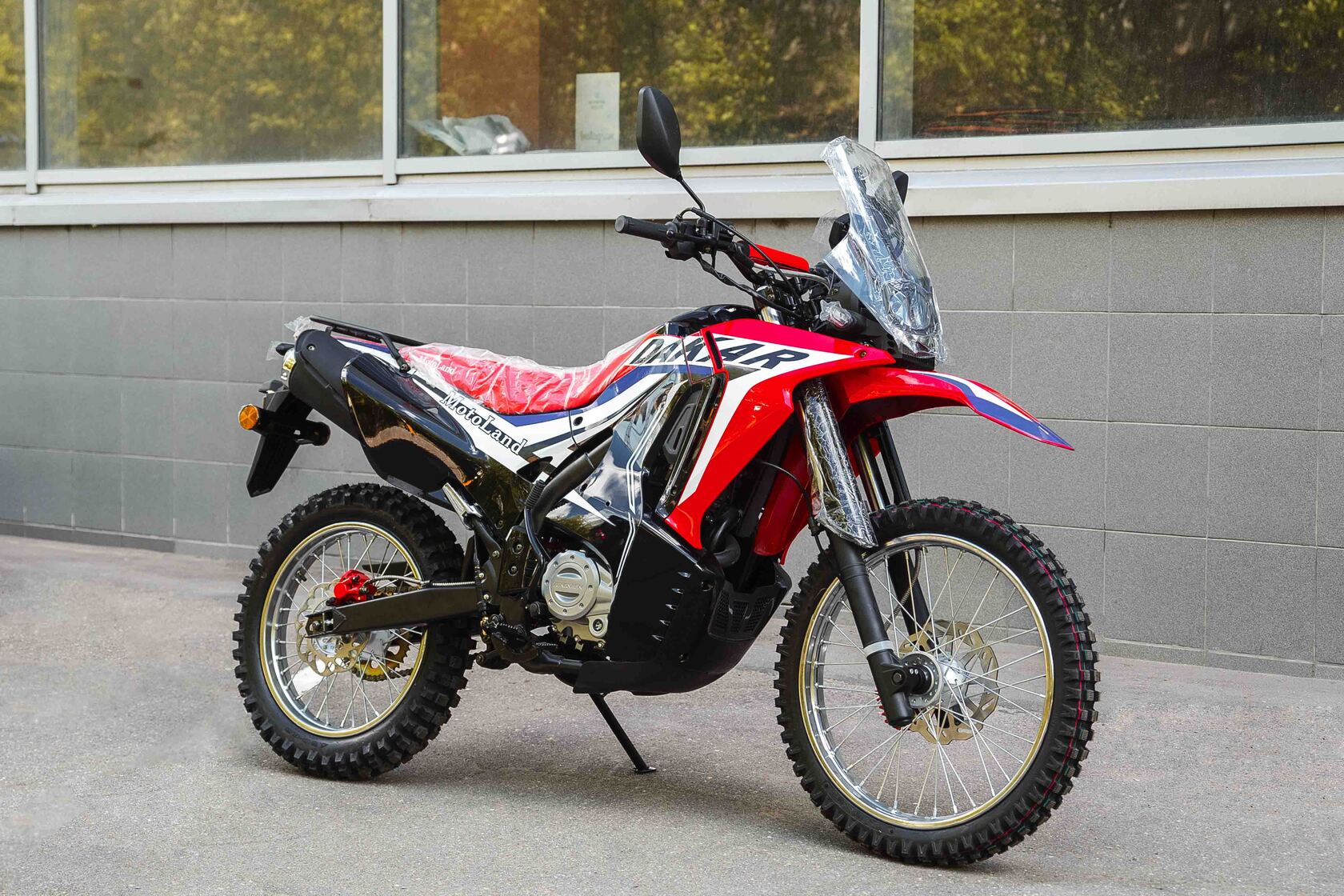 Новинка 2020 года - Мотоцикл Motoland DAKAR 250 LT.Данный мотоцикл прост в управлении и неприхотлив в обслуживании и подходит мотолюбителям Эндуро любого возраста,и опыта вождения, которым нужна техника для поездок из точки А в точку Б и обратно по дорогам и легкому бездорожью.Motoland DAKAR 250 LT оснащен одноцилиндровым четырехтактным двигателем 165FMM (CBB250) мощностью 16 л. с. и объемом 250 см³ с воздушным охлаждением. Установлен карбюратор PZ 30 с ускорительным насосом увеличивает скорость разгона.Для запуска двигателя можно использовать электростартер или кикстартер.Механическая трансмиссия содержит 5 передач.Мотоцикл оснащен надежными передними и задними тормозами с двух поршневыми тормозными суппортами.Колёса спицованные, размер заднего колеса — 18 дюймов, переднего — 21 дюйм. Весит 120 кг, выдерживает нагрузку до 150 кг.У нас Вы можете купить этот мотоцикл с бесплатной доставкой по РФ и гарантией до года. Также его можно приобрести в рассрочку или в кредит.