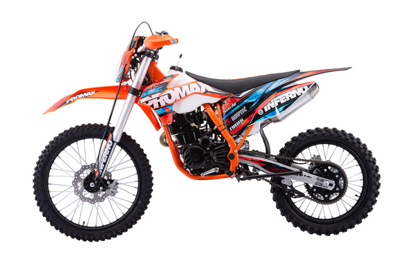 Еще больше мощности с двигателем ZS-CB300RL (ZS175FMM-7 INFERNO), 4 клапана с 5-ти ступенчатой коробкой передач, электронным и кик.стартером! Больше адреналина! Больше впечатлений! Promax Infermo 380 - для тех, кто хочет бросить вызов бездорожью! Новая модель года от завоевавшего доверие райдеров в странах Европы и Азии бренда Promax, идеально подойдет как начинающим райдерам, так и заядлым профи!Хромомолибденовая рама и двигательПрочность рамы рассчитана на долгий срок службы! Качество сварных швов гарантировано рентгеном! В подтверждении качества производитель дает 3 года гарантии! 300 кубовый мотор в паре с 34 карбюратором гарантировано обеспечит вам 29 л.с.Колеса и подвескаСпинцованные диски из AW 7075 для уверенности на неровных дорогах и при прыжках! Резина выдерживает нагрузку в летний сезон, благодарю высокому качеству материалов изготовления. А чтобы насладиться зимним весельем – можно вкрутить шипы и отправиться на дёрби! Плавность хода подвески и устойчивость мотоцикла обеспечивает подвеска KKE, установленная как спереди, так и сзади. Пружина с переменной жесткостью, настройки амортизатора на сжатие и отбой покорят сердца райдеров и природные препятствия!Сиденье по технологии AcerbisФирменное нескользящее сиденье, выполненное по технологии Acerbis anti-slip grip, держит любого райдера как суперклей: специальное ребристое водонепроницаемое покрытие позволяет чувствовать себя комфортно в любых погодных условиях.ОптикаСветодиодная оптика последнего поколения позволит не ограничивать себя световым днем в развлечениях.Короткоходная ручка газаРучка газа с коротким ходом от Nibbi Racing – пожалуй лучшее решение на подъемах и труднопроходимых участках. Нет нужды перехватывать ручку для получения большей мощности, достаточно подобрать необходимое усилие кисти и получить результат, оптимальный для стиля езды райдера!