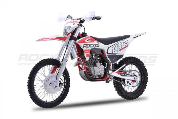 Вторая, обновленная версия эндуро мотоцикла ROCKOT GS 2 Origine.GS 2 Origine - полноразмерный эндуро мотоцикл, удовлетворяющий вкусу и потребностям как новичков, так и опытных райдеров.Мотоциклы ROCKOT серии GS, обрели высокую популярность, благодаря применению в плане дизайнерского и практического решения - пластика модели GASGAS.На белый пластик, нанесена графика в белой, красной, черной расцветке. Выбранное цветовое решение, придает мотоциклу броский, стильный дизайн, так характерный для внедорожной техники. Каждая деталь мотоцикла, дополняет общую концепцию дизайна.Обода колесных дисков окрашены в черный цвет, а красная графика нанесенная в виде наклеек, защитит ЛКП ободов от царапин. Алюминиевые ступицы окрашены в яркий, красный цвет.На черной раме установлена защита красно-черного цвета. Также, в красном цвете представлены: CNC крышка топливного бака и обслуживаемый топливный фильтр. Защита рук, складные, алюминиевые рычаги и траверсы окрашены в черный цвет.Предыдущая версия эндуро мотоцикла ROCKOT GS 2 Origine оснащалась двигателем CB250-F 172FMM-3A. Обновленный GS 2, обрел новый двигатель PR250 172FMM-5, с балансирным валом и пятиступенчатой КПП.Балансирный вал, значительно снижает уровень вибрации от двигателя, что ранее было единственным минусом двигателя CB250-F. Особенностью двигателя, можно считать то, что мощность двигателя осталась прежней - 21 лошадиная сила.За образование топливной смеси и ее подачу в двигатель, отвечает производительный карбюратор PE30. Повышает характеристики мощности и крутящего момента - обновленный “PowerBomb” увеличенного объема. Коробка передач - пятиступенчатая, с многодисковым сцеплением.ROCKOT GS 2 Origine построен на новой раме S8, которая является улучшенной, доработанной версией популярной рамы K8, аналогичной по геометрии рамам “австрийской троицы”. Рама производится из труб шестигранного сечения хром-молибденовой стали, которая является очень прочной и легкой. Подрамник производится из алюминия. Геометрия рамы, благодаря правильно выверенному центру тяжести и углу наклона вилки - способствует наилучшей управляемости устойчивости мотоцикла на низкой скорости.Устанавливаемая на мотоцикл ROCKOT GS 2 Origine подвеска известной фирмы “KKE” - делает мотоцикл одним из наиболее подходящих для проезда по сложным эндуро маршрутам. Спереди расположена телескопическая вилка перевернутого типа, длиной - 940 мм и толщиной рабочего штока - 48 мм. Конструкция вилки - регулируемая с картриджем открытого типа. Данная конструкция подвески отлично проявляет себя в эндуро, в том числе и в режиме гонки.Сзади установлен усиленный маятник из алюминия, который соединен с задним моноамортизатором, посредством системы рычагов прогрессии. Моноамортизатор “KKE” длиной 470 мм, регулируется на скорость сжатия, скорость отбоя и преднатяжение пружины. Широкий диапазон регулировки передней и задней подвески, позволит точно настроить ее работу под вес и стиль езды каждого райдера. Система прогрессии, обеспечивает равномерную, мягкую работу и увеличивает длину рабочего хода подвески.
