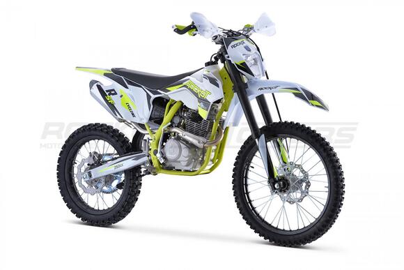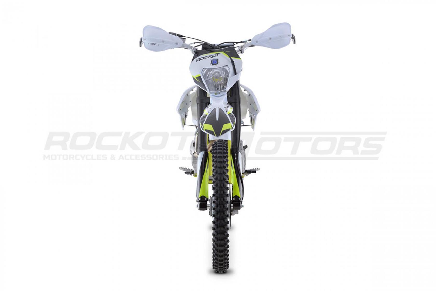 Новинка 2021 года, . Обладают энергоемкой подвеской, передняя вилка имеет возможность регулировки, по скорости сжатия и отбоя. Задний амортизатор с прогрессией, а также с возможностью регулировки. Данный мотоцикл подойдет как новичкам, так и тем кто захотел пересесть с питбайка на более кубатурную технику. Двигатель воздушного охлаждения в паре с карбюратором NIBBI PE 30 выдает 21 л. с., которые позволяют с легкостью брать любые подъемы, преодолевать броды, а так же перескакивать препятствия. На мотоцикле ROCKOT Вы сможете познать и почувствовать прекрасный мир эндуро.