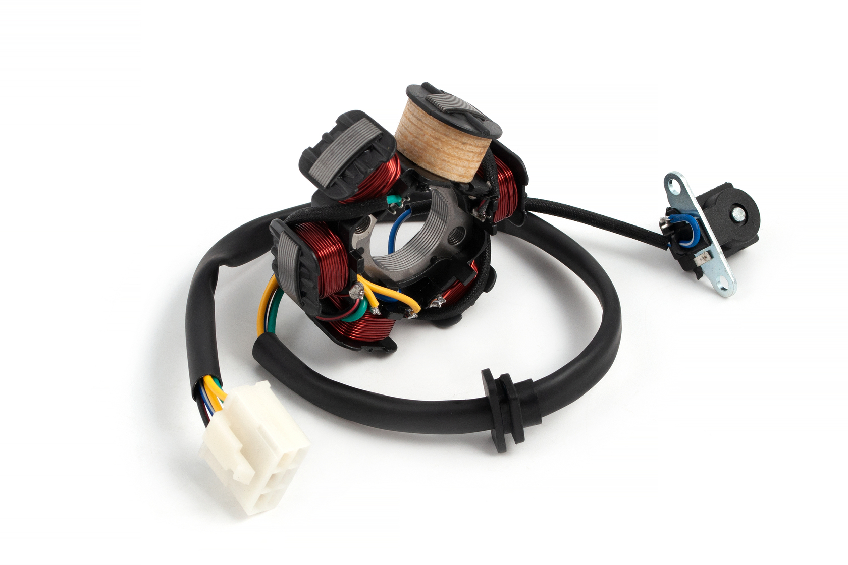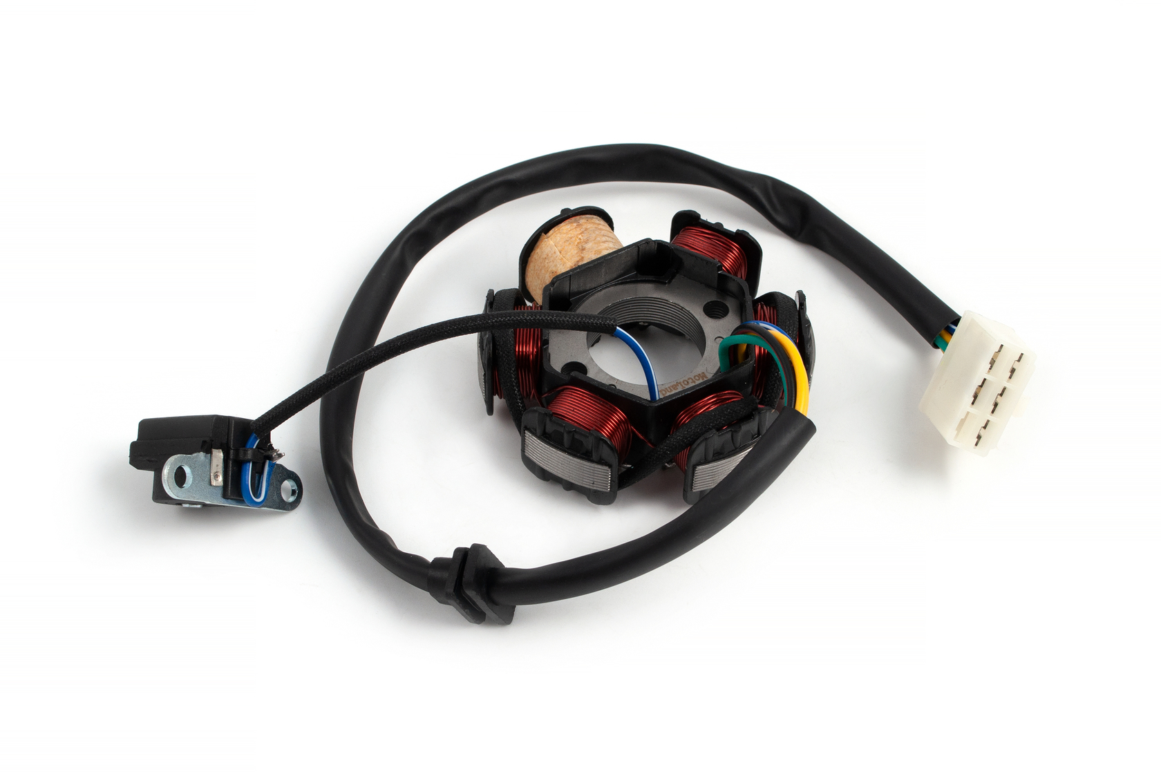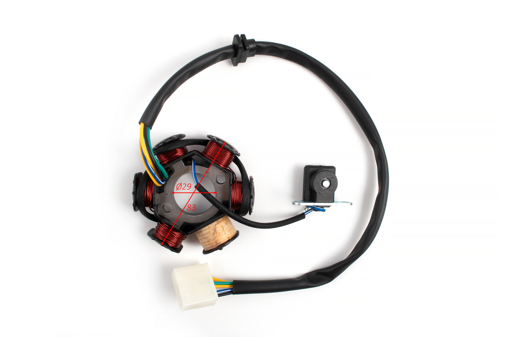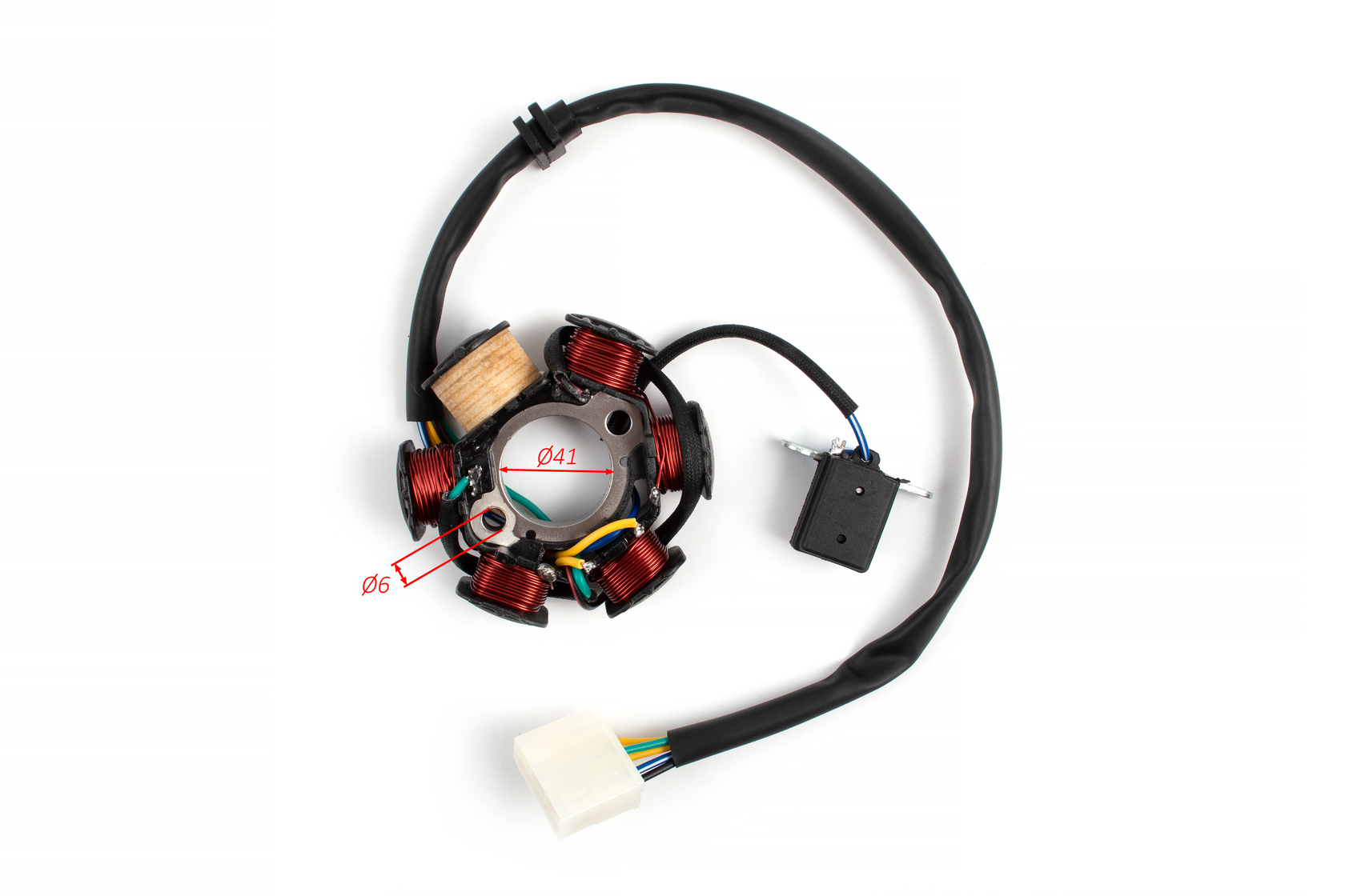 Статор (6 катушек)Предназначен для двигателей 139FMB, 147FMH, 152FMH с объёмом 50–125 см³. Идеально подходит для питбайков, квадроциклов, мопедов и другой мототехники.Особенности:6 катушек обеспечивают стабильную работу генератора.Совместим с электросистемами, питая зажигание, фары, датчики и другие компоненты.Надёжная конструкция для долговечной эксплуатации.Применение: ремонт или модернизация двигателей китайского и азиатского производства.