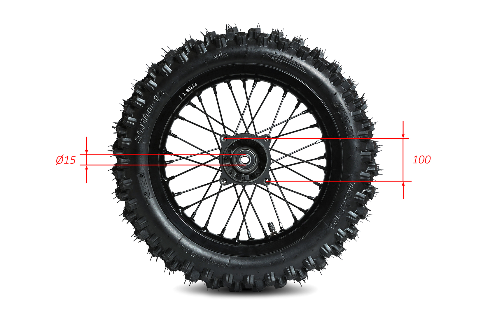Готовое к установке заднее колесо R12 для большинства питбайков с алюминиевой ступицей под ось 15 мм. В комплекте надёжная покрышка Yuanxing 80/100-12. Колесо поставляется без звезды и тормозного диска, что позволяет использовать уже имеющиеся элементы с вашего мотоцикла или приобрести совместимые компоненты отдельно.