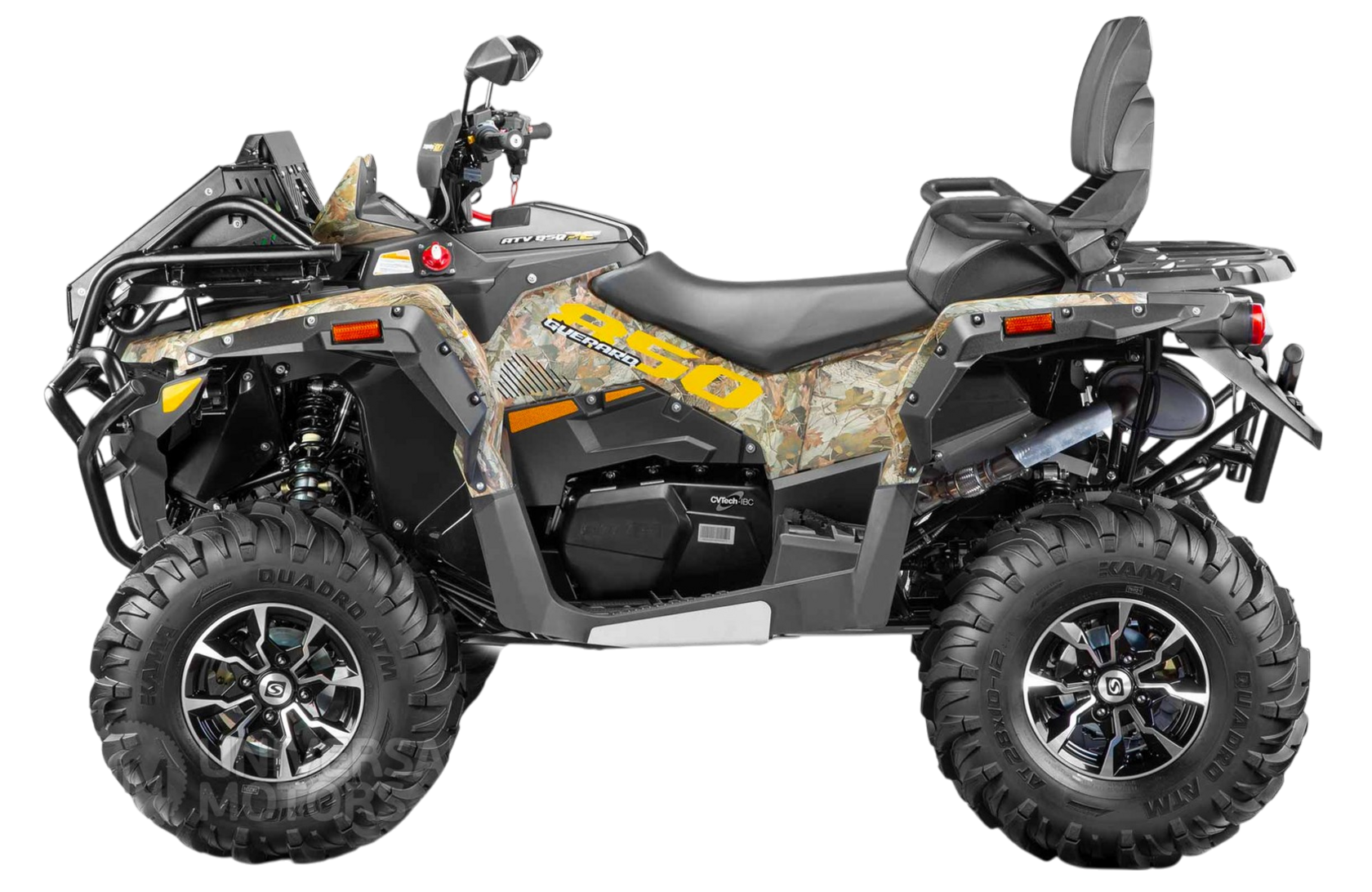 • Комфорт на долгие километры: Электроусилитель руля (EPS) снижает усталость при управлении, а подвеска с ходом 185/180 мм и клиренсом 300 мм обеспечивает плавность хода на любой местности. Бак на 30 литров дает невероятный запас хода.