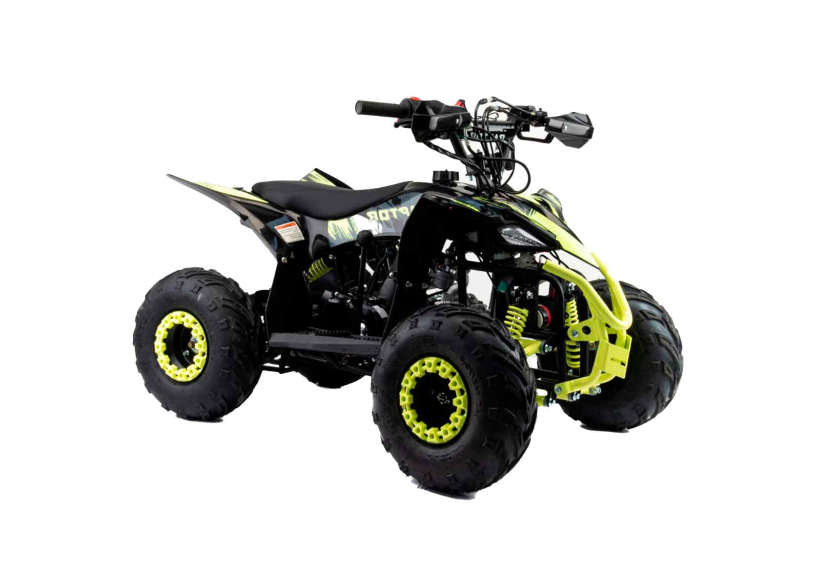 Квадроцикл Motoland 110 RAPTOR A cтильный, современный, квадроцикл подойдет вашему ребенку как мальчику, так и девочке. Его спортивный дизайн разработан с учетом вкусов современного поколения и понравится всем без исключения.Квадроцикл не предназначен для дорог общественного пользования. Его 6 дюймовые колеса на хорошей внедорожной резине с легкостью преодолеют все преграды в виде грязи, песка, луж и кочек. А что еще нужно для веселых покатушек в выходные дни?У этого квадроцикла отличная управляемость в любых условиях эксплуатации, благодаря грамотной настройке подвески. Данный квадроцикл оснащен вариатором с реверсом, который установлен на усиленной раме, что дает уверенность в прочности конструкции.Ваш ребенок быстро овладеет навыками езды на данной технике и получит массу запоминающихся эмоцийТормоза передние барабан., задние дисковые.Квадроцикл оснащен двигателем 1P39FMA 110 см3, мощностью 7 л.с. c воздушным охлаждением, электрстартером, светодиодной оптикой, стоп-сигналом. Тормозная система: передние - барабаны / задний - гидравлический дисковый.Для безопасности имеется чека отключения двигателя, если ребенок отпускает руль, то мотоцикл практически сразу отключается при разрыве чеки.