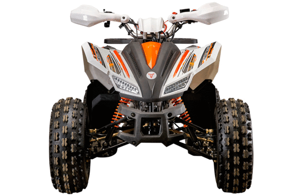Спортивный экстерьер и модная гоночная многоцветная раскраска пластиковых частей корпуса привлекает внимание всех, кому квадроцикл попадается на глаза. Песочные шины повышенной проходимости с агрессивным протектором гармонично дополняют дизайн машины. Защита рук водителя, багажник, LED-спидометр, светодиодные фары и стоп-сигнал – всё это входит в базовую комплектацию АТВ.