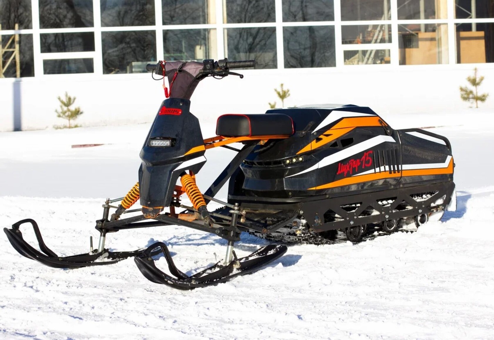 Утилитарный мотобуксировщик Мухтар 15, разработанный российскими инженерами, является универсальным модульным средством передвижения для эксплуатации в любое время года в условиях бездорожья. Эта техника станет вам настоящим помощником на охоте, рыбалке или в сельскохозяйственной деятельности.Мухтар 15 возможно использовать как в классической компоновке с рулевым управлением из саней (сани расположены сзади), так и с лыжным модулем, расположенным спереди, с помощью которого улучшается управляемость и повышается комфортность передвижения рейдера. Для эксплуатации летом достаточно заменить лыжи лыжного модуля на колёса! Так же предусмотрено дополнительная установка отвала для чистки снега или планировочных работ с легкими грунтами.Лыжный модуль построен на базе независимой многорычажной подвески, хорошо зарекомендовавшей себя на снегоходе Тунгус и SF с полной унификацией и взаимозаменяемостью деталей. Такая подвеска позволяет устойчиво проходить любые неровности без потери управляемости!При управлении мотобуксировщиком из саней, съёмный руль переносится на рулевую штангу. Так же мощная светодиодная фара устанавливается на лыжный модуль или переносится на мотобуксировщик при использовании техники без лыжного модуля.Мухтар 15 оснащен хорошо зарекомендовавшим себя двигателем Lifan объемом 420 куб.см. мощностью 15 л.с., с электростартером и ручным запуском. Трансмиссия реализована на легендарном вариаторе «Сафари» и реверс-редукторе «Буран». Трансмиссия и двигатель установлены на съёмную платформу, что облегчит владельцу перевозку и обслуживание. Привод на гусеницу осуществляется через усиленную 530 цепь с сальниковыми уплотнителями. Использование реверс-редуктора дает большое преимущество при разворотах либо в ситуациях, когда движение вперед затруднено.Высокопрочная рама изготавливается путём лазерной резки из цельногнутого листа металла толщиной 2,5 мм. Для гарантированной защиты металла от коррозии, металлические детали проходят через дробеструйную обработку и окрашиваются полимерной окраской. Длинная 2828 мм и широкая 500 мм гусеница Composit, обеспечивает большую площадь соприкосновения с поверхностью, что позволяет эффективно использовать всю мощность для выполнения задач любой сложности. В конструкции используется три катковые подпружиненные тележки с ограничителями переворота. Катки обрезиненные, с заглушками от попадания воды и грязи в подшипники. Для повышения проходимости в глубоком снегу возможно установить склизы