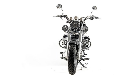 Комплектация Передний тормоз гидравлический дисковый с однопоршневым суппортом, прочно закреплён на 6 болтов. Тормозной шланг защищён специальным изолятором. Задний тормоз барабанный, легко регулируется даже в полевых условиях.Руль сечения 22 мм с высоким подъёмом удобен для мотоциклистов разного роста. Зеркала заднего вида большие, с хорошим обзором. На ручках расположены кнопки дальнего и ближнего света, сигнал аварийной остановки, кнопки включения и выключения двигателя, блинкер, поворотники, звуковой сигнал. Также на руль вынесен подсос, что удобно при холодном запуске.Мотоцепь 420 защищена специальным кожухом. На чоппер установлены 2 выхлопные трубы.