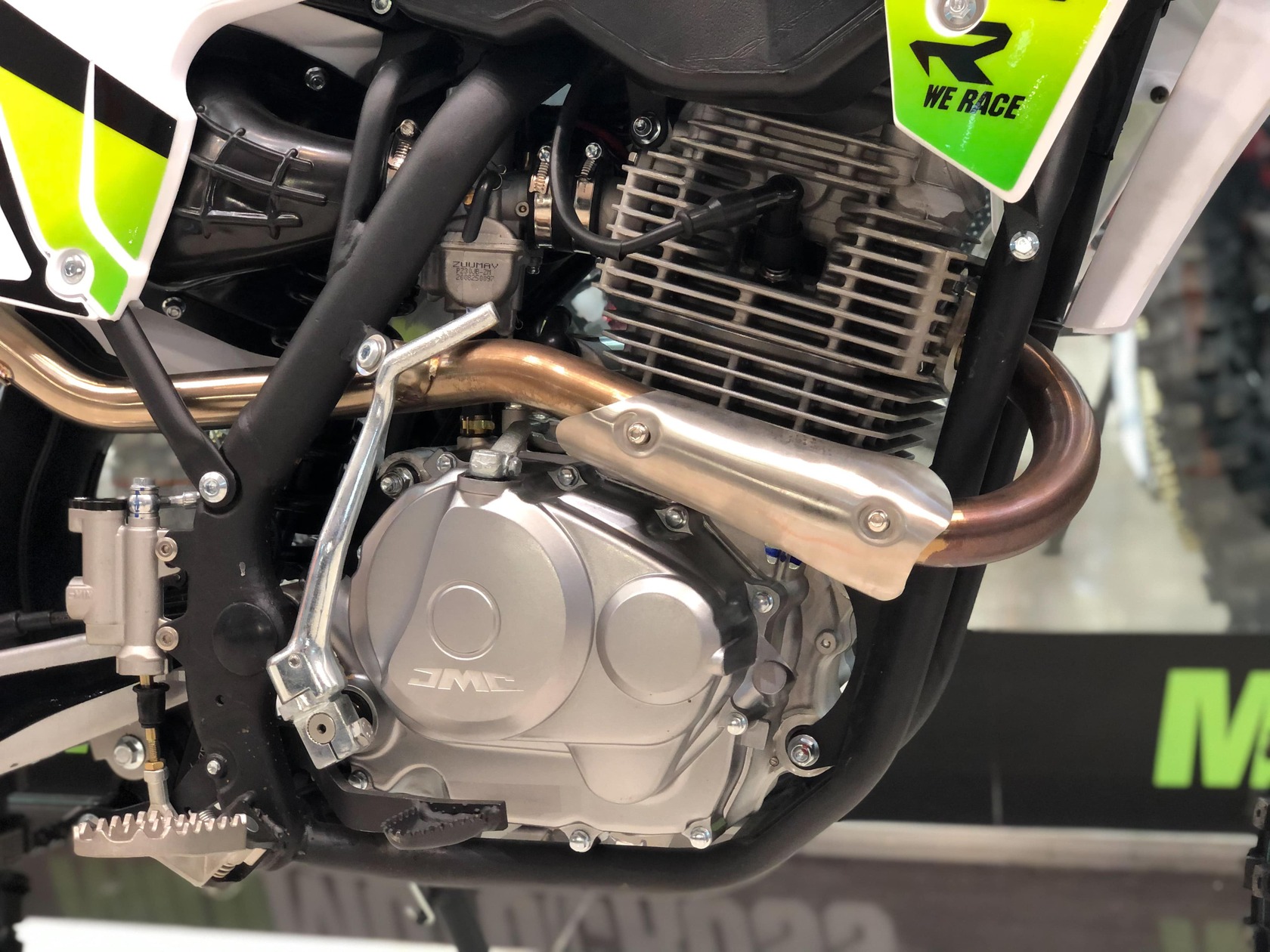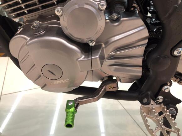 Комплектация Руль 28мм алюминиевый. Короткоходная ручка газа. Подсос на руле. Алюминиевые подножки водителя, алюминиевая лапка КПП. Цепь 520 КМС. Передний тормоз дисковый с двухпоршневым суппортом, задний - дисковый с однопоршневым суппортом.