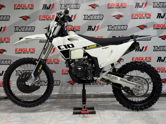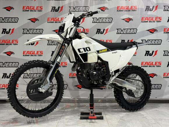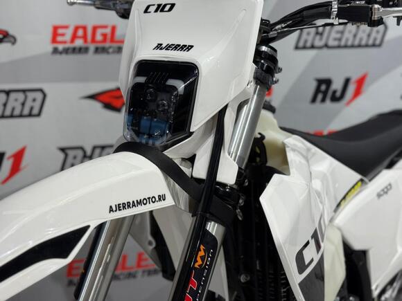 Мотоцикл AJERRA SAGAI C10 YB300H — это современный эндуро-байк, разработанный для уверенной езды как по пересечённой местности, так и по лёгкому бездорожью. Прочная рама К10 завода AJ1, копия KTM 2024 года, обеспечивает стабильность и точность управления в любых условиях, а качественный пластик в стиле Husqvarna 2024 года добавляет динамичный и стильный внешний вид. Двигатель Loncin YB300H 176 FMN с воздушным охлаждением демонстрирует надёжную работу, стабильную тягу и простоту обслуживания. В сочетании с карбюратором Nibbi Racing PWK 34 Black он обеспечивает точную подачу топлива и отзывчивость на газ, что делает мотоцикл удобным для активной езды и тренировок. Подвеска модели тщательно продумана: передняя вилка HTW SCC 930 мм с одним картриджем и задний амортизатор HTW 2450 с прогрессией гарантируют плавность хода и контроль над мотоциклом на неровных поверхностях. Алюминиевый маятник и фрезерованные траверсы AJ1 2024 повышают прочность конструкции и долговечность техники. Эргономика и управление на высоте: усиленный руль AL7075, алюминиевые подножки AJ1 2024 (копия S3), ручка газа Nibbi и грипсы Lock ON обеспечивают комфорт и надёжность в любых условиях. Светодиодная оптика 2 EYE LED Generation 4 (50W) позволяет безопасно ездить даже в сумерках, а алюминиевые обода UNISON 7116 и фрезерованные ступицы повышают прочность колёсной базы. Мотоцикл оборудован цепью KMC 520 Pro, алюминиевой ведомой звездой AL7075 51 зуб, а также выхлопной системой AJ1 2025, что делает его управляемым и надёжным при любых нагрузках. Для удобства и защиты техники предусмотрены счётчик моточасов, защита рамы и мотора, стропы передние и задние, заглушки руля. Сиденье AntiSkid обеспечивает комфортную посадку и предотвращает скольжение. Высота по седлу составляет 940 мм, что делает AJERRA SAGAI C10 YB300H удобным для райдеров среднего и высокого роста. Этот мотоцикл сочетает в себе высокотехнологичные комплектующие, надёжность и стильный дизайн, подходя как для спортивных покатушек, так и для любительского эндуро.