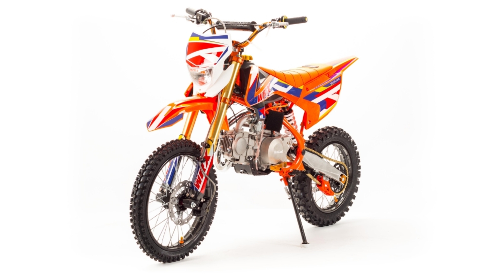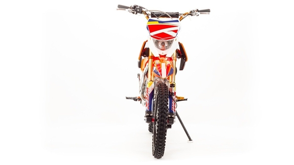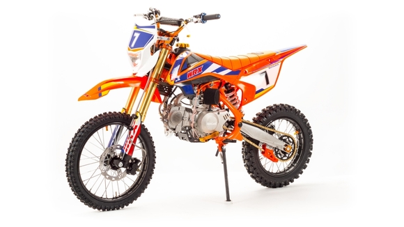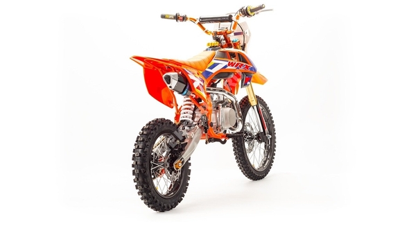 Недорогой надёжный питбайк WRX125 идеален для поездок по грунтовым дорогам и бездорожью. Хорошо чувствует себя на мягком и среднем грунте, разгоняется до 90 км/ч. Оснащён CNC траверсами, фарой, алюминиевыми ободами, весит всего 70 кг. Питбайк прост в управлении и не требует специального ухода, подойдёт как новичкам, так и любителям мотокросса.У кроссового мотоцикла WRX125 отличный узнаваемый дизайн. Конструкция подчёркивает неуступчивый спортивный характер питбайка, который не остановится ни перед одним препятствием. Пластик комбинированный, прочный, не ломается при сгибании. Передняя подвеска — телескопическая нерегулируемая вилка перевёрнутого типа, которая отлично подходит для преодоления ям, ухабов и других неровностей плохих дорог или их отсутствия. Задняя подвеска маятниковая с моноамортизатором. Руль 22 мм с высоким подъёмом и перекладиной удобен для мотоциклистов разного роста.Питбайк весит всего 70 кг, при этом выдерживает вес до 150 кг. Оснащён CNC траверсами, рама полудуплексная стальная, мотоцепь качественная. Размер заднего колеса — 14 дюймов (350 мм), переднего — 17 дюйм (430 мм). Тормоза дисковые, передний тормозной суппорт двухпоршневой, задний — однопоршневой. Питбайк оснащён карбюратором с фильтром нулевого сопротивления и одноцилиндровым четырёхтактным двигателем с воздушным охлаждением. Надёжный мотор мощностью 9 л. с. и объемом 125 см³ разгоняет кроссовый мотоцикл WRX125 до 90 км/ч. Коробка передач механическая, четырёхступенчатая. Система зажигания электронная (CDI), для запуска двигателя можно использовать кикстартер.Покрышки с шипами и высоким грунтозацепом идеальны для бездорожья. Мощность мотора и небольшой вес питбайка позволяют ему преодолевать значительные препятствия и непролазную грязь, хорошо заходить в подъёмы.Для поездок при низкой видимости и в ночное время суток питбайк оснащён фарой.Питбайк 125 относится к недорогим моделям, которые при должной эксплуатации работают без сбоев и капризов. Кросс неприхотлив в обслуживании, не занимает много места в гараже. При необходимости в нём легко сменить любую повреждённую деталь.У нас Вы можете купить этот питбайк с бесплатной доставкой по РФ и гарантией до года. Также его можно приобрести в рассрочку или в кредит.