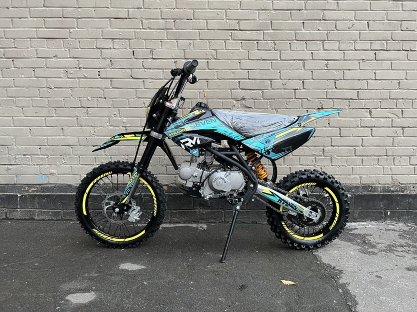Представляем вниманию поклонников офф-роада и фри-райда питбайк Regulmoto Seven – новинку мототехники Regulmoto модельного ряда 2020 года. Regulmoto Seven – оптимальный выбор для райдера, который позволит своему владельцу совершенствовать навыки управления мототехникой на треке мотостадиона, а также получать максимальное удовольствие от офф-роад рейдов.В раме Regulmoto Seven установлен 125-кубовый 4-тактник YX с электростартером– этот двигатель отлично себя зарекомендовал в качестве надежного и простого силового агрегата. Подготовкой топливной смеси занимается карбюратор Nibbi PE19. Запуск мотора возможен как при помощи кнопки электростартера, так и привычной лапкой кика.Колеса питбайка размером 17/14 дюймов с усиленными алюминиевыми ободьями на 36 спиц «обуты» в качественную кроссовую моторезину Kenda. Установленные на колесах буксаторы предотвратят проворачивание покрышки и защитят камеры от возможных повреждений. Питбайк комплектуется фарой головного света; она включается при помощи поворота ключа в замке зажигания. В качестве элементов защитного обвеса используются пластиковые обтекатели типа CRF.Подбор комплектующих свидетельствует о полной готовности питбайка к покорению бездорожья. Среди стоковых компонентов мини-мотоцикла стоит отметить: