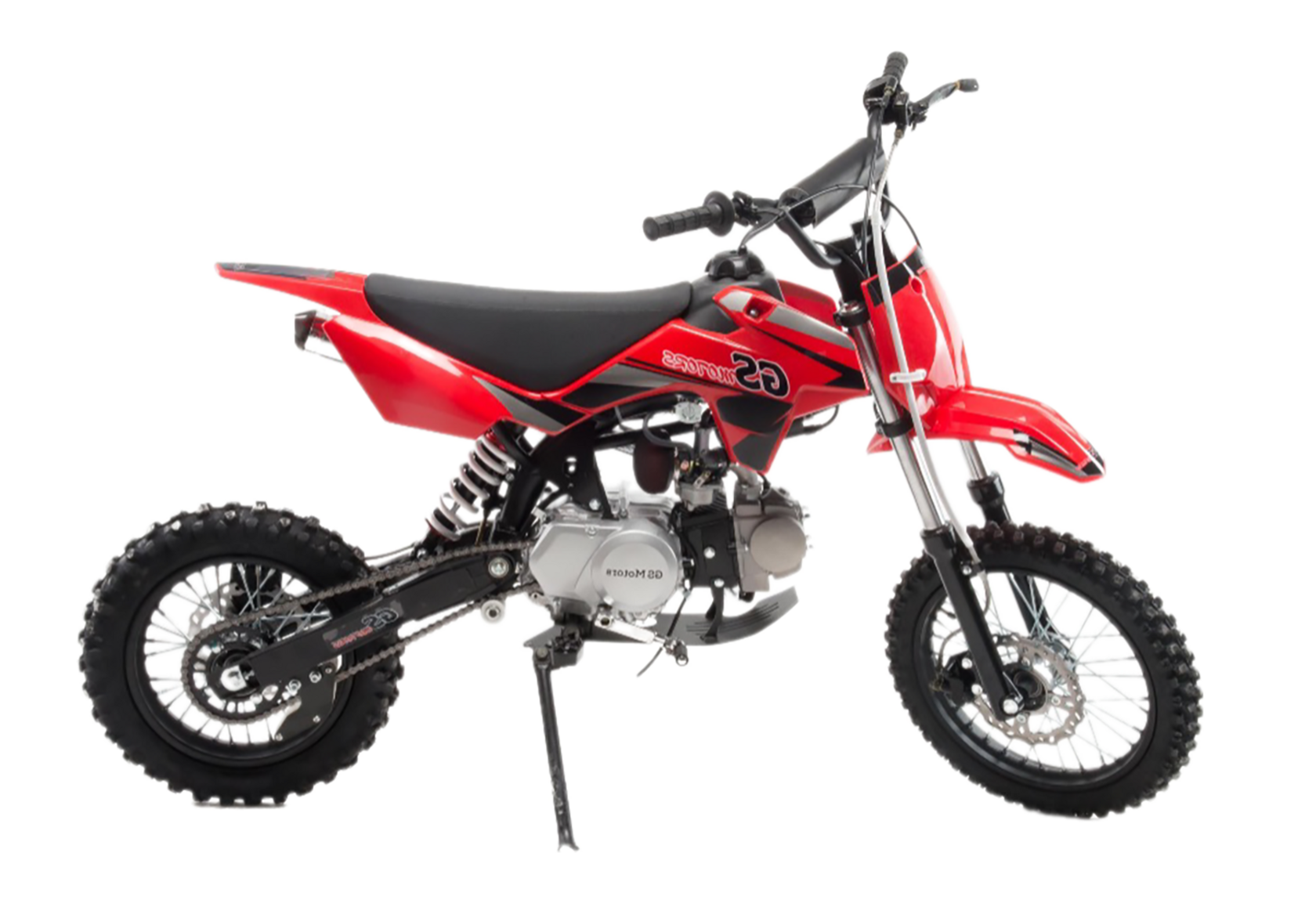Питбайк Motoland GS Motors S12 отлично подходит для поездок по грунтовым дорогам и бездорожью. Хорошо чувствует себя на мягком и среднем грунте.Питбайк прост в управлении и не требует специального ухода, подойдёт как новичкам, так и любителям мотокросса.Передняя подвеска — телескопическая нерегулируемая вилка. Задняя подвеска маятниковая с моноамортизатором. Руль 22 мм с высоким подъёмом и перекладиной.Питбайк весит всего 60 кг, при этом выдерживает вес до 75 кг. Колёса спицованные, металлические. Размер заднего колеса — 12 дюймов, переднего — 14 дюймов. Тормоза дисковые, передний тормозной суппорт двухпоршневой, задний — однопоршневой.Питбайк оснащён карбюратором JINGKE и одноцилиндровым четырёхтактным двигателем с воздушным охлаждением. Надёжный мотор мощностью 9 л. с. и объемом 125 см³ разгоняет питбайк до 70 км/ч.Трансмиссия - 4х ступенчатая. Система зажигания электронная (CDI). Запуска двигателя - кикстартер. Мощность мотора и небольшой вес питбайка позволяют ему преодолевать значительные препятствия и хорошо заходить в подъёмы.Питбайк относится к бюджетным моделям, которые при должной эксплуатации работают без сбоев. При необходимости в нём легко сменить любую повреждённую деталь.