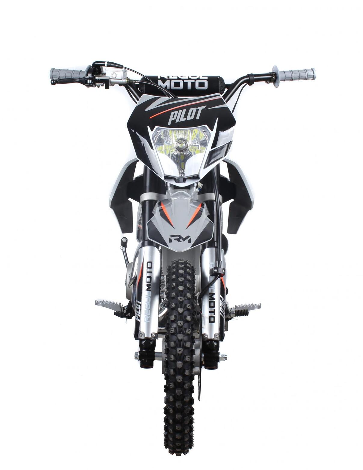 Regulmoto Pilot 110 c электростартером и полуавтоматической коробкой передач – питбайк начального уровня, созданный специалистами Американского мотобренда PitsterPro для юных мотогонщиков.Данная модель представляет линейку мототехники Regulmoto модельного ряда 2021 года, отличается высокой надежностью и простотой в эксплуатации.В прочной и надежной раме питбайка стоит 4х-тактный двигатель YX110 воздушного охлаждения с 4-ступенчатой полуавтоматической трансмиссией.Высокий класс используемых комплектующих обеспечивают необходимый для внедорожной мототехники уровень надёжности и комфорта.Яркая светодиодная фара позволяет использовать питбайк также в тёмное время суток.В 2021 году Regulmoto Pilot получил ряд обновлений – кроме нового дизайна графики, изменения коснулись дизайна пластикового обвеса, подножек, рычагов тормоза, переключения передач и глушителя.Эта модель рассчитана на детей и подростков возрастом от 6 до 12 лет.Наличие полуавтоматической трансмиссии позволяет детям и подросткам с минимальным опытом управления двухколесной мототехникой быстро освоить основы и совершенствовать навыки вождения на бездорожье.