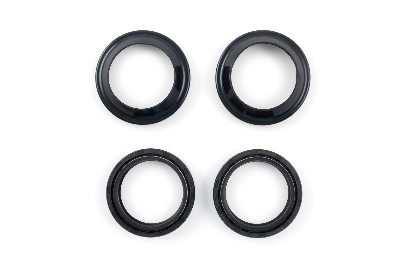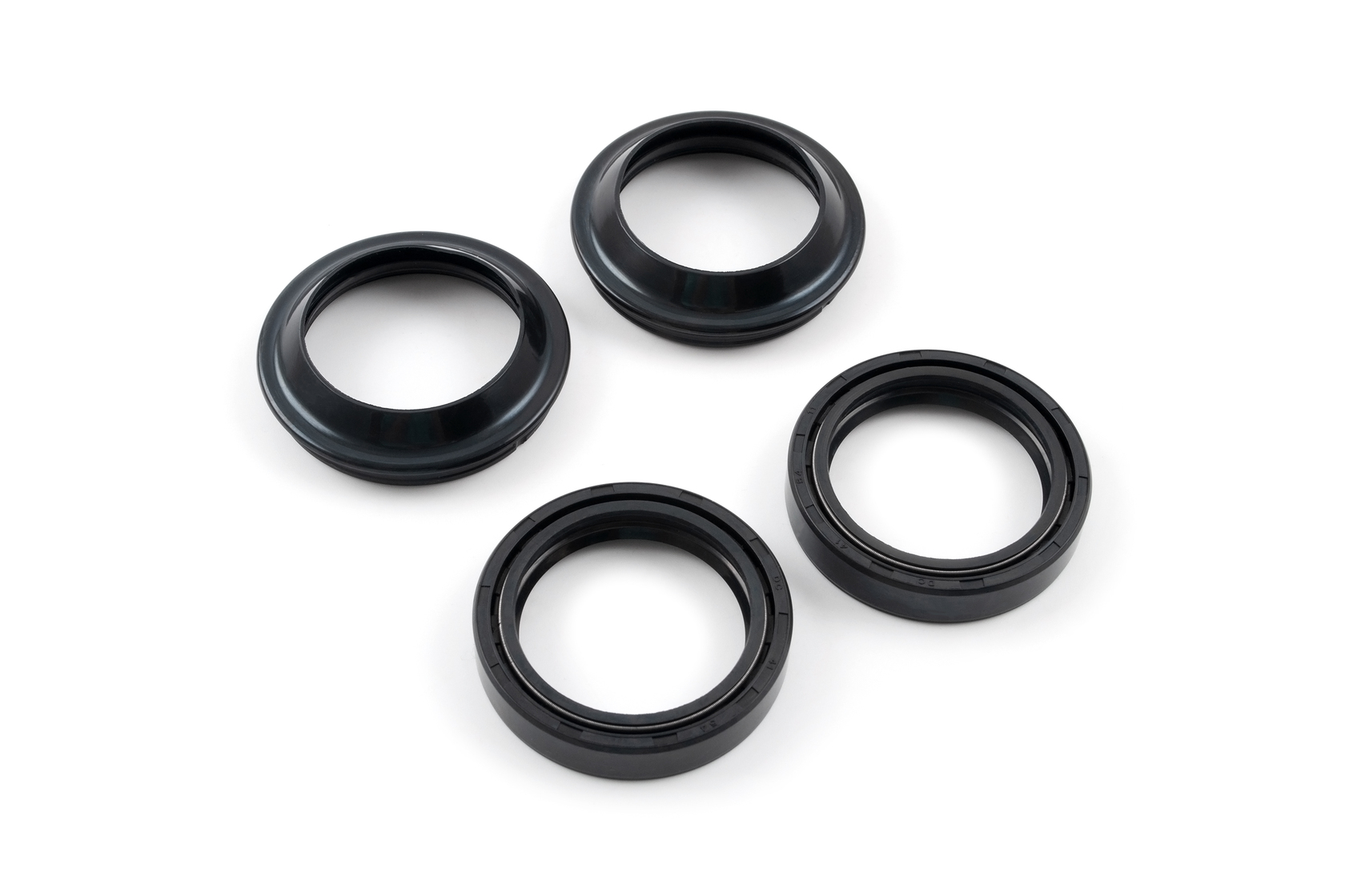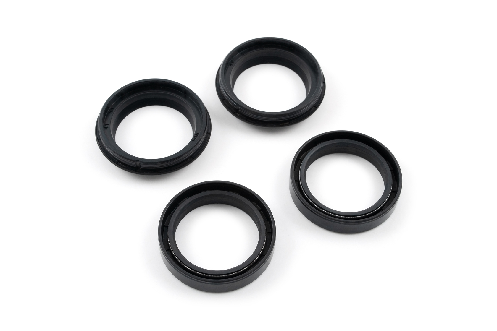 Полный комплект для обслуживания передней вилки мотоцикла. Включает 2 сальника размером 41×54×11 мм и 2 пыльника размером 41×54×13 мм. Предназначен для полного восстановления герметичности и защиты вилки на обоих перьях.