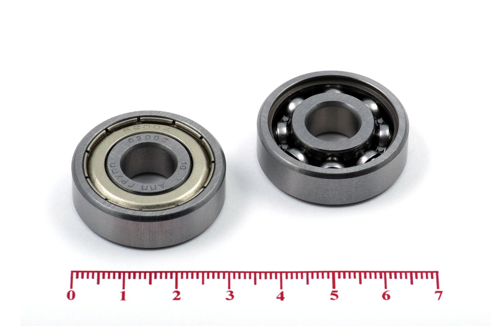 Пара шариковых однорядных подшипников 6200z с посадочным диаметром 10 мм и наружным диаметром 30опедов и другой мототехники. Z — наличие защитной стальной шайбы с одной стороны подшипника для защиты внутренней части от грязи и влаги (цвет шайбы может отличаться в зависимости от партии).