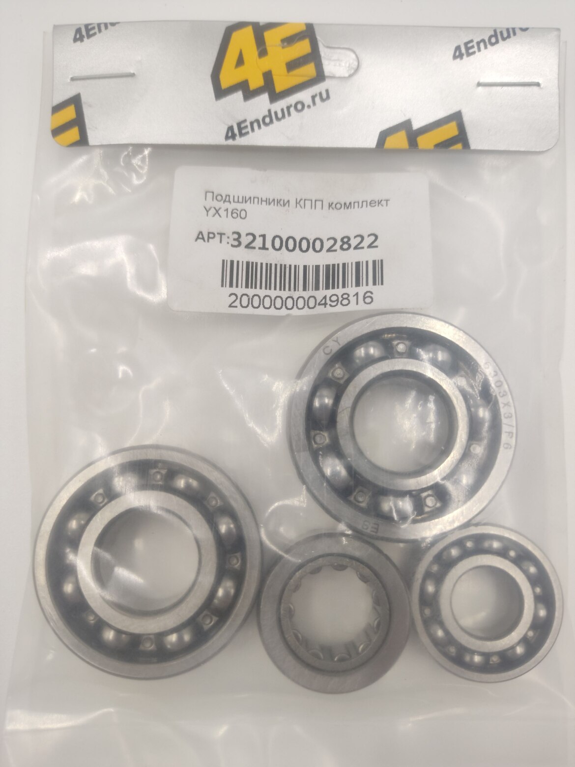 Полный комплект подшипников для коробки передач двигателя YX160. В набор входят 4 подшипника различных типоразмеров. Обеспечивают плавную работу трансмиссии и снижают механические потери.