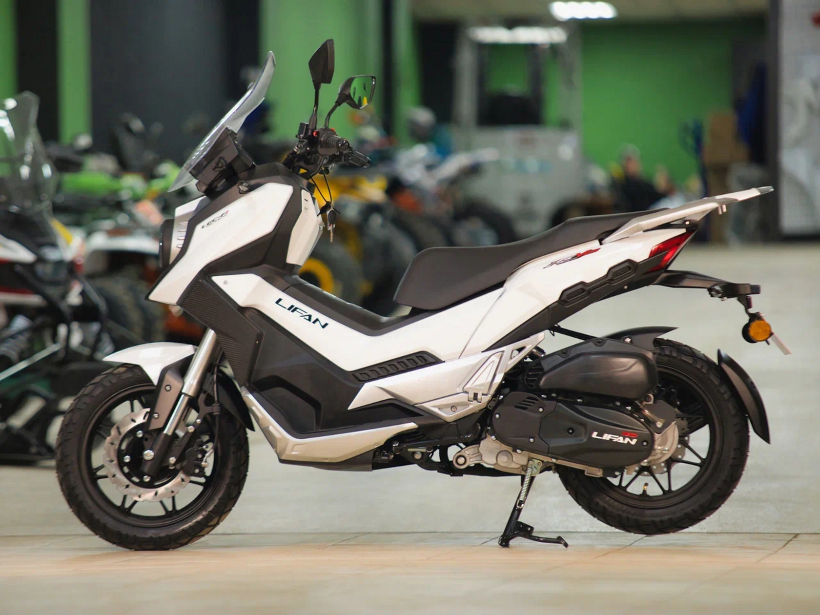Lifan KPV 150 - современный городской скутер с стильным дизайном, светодиодной оптикой, надежным современным двигателем с системой старт-стоп! Последнее поколение скутеров от компании Лифан. Модель KPV150 обладает ярким, современным дизайном, высоким качеством изготовления деталей и комплектующих.- Светодиодная оптика обеспечивает отличную видимость при передвижении в темное время суток.- Вседорожный протектор шин дает уверенность не только на сухом асфальте, но и на мокрой дороге или легком бездорожье.- Современный, самый надежный инжекторный двигатель в своем классе 150куб EFI, с водяным охлаждением и системой старт-стоп (при остановке глушит двигатель и при подаче газа мгновенно запускает его)- Дисковые тормоза обеспечивают надежное торможение в любых ситуациях- Представлены в цветах: Красный, Синий, Белый и Черный