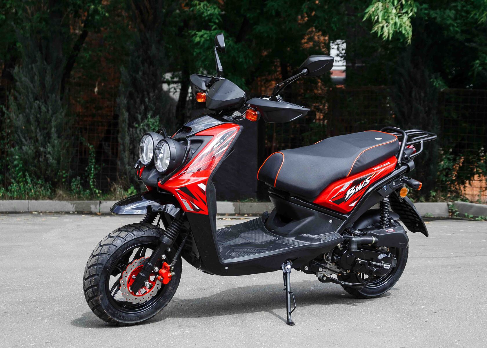 Мощный скутер Motoland BWS 50 — это отличный вариант для загородного катания и поездок на рыбалку.